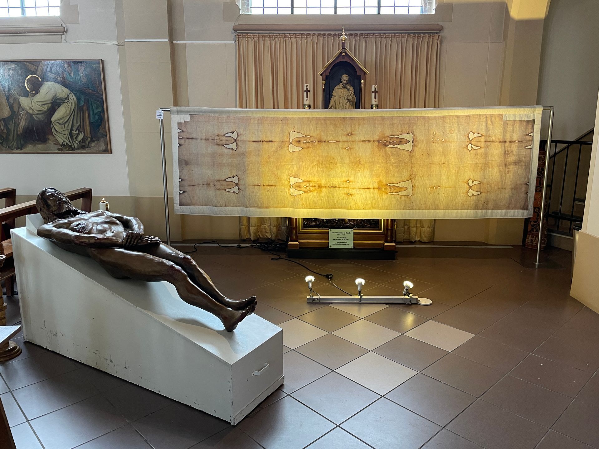 Tijdens de Kruiswegwandeling zal ook de expositie van de Lijkwade van Turijn te zien zijn van 14 maart tot en met 1 april in de Vincentiuskerk.
